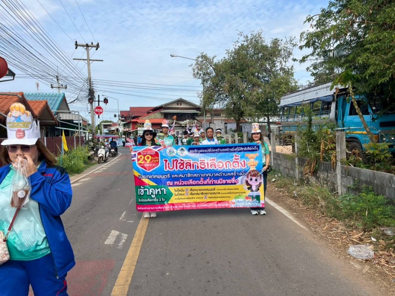 Gallery :: กิจกรรมเดินรณรงค์เลือกตั้งให้ผู้มีสิทธิ์เลือกตั้งสมาชิกสภาเทศบาลตำบลสร้างมิ่ง และนายกเทศมนตรีตำบลสร้างมิ่ง